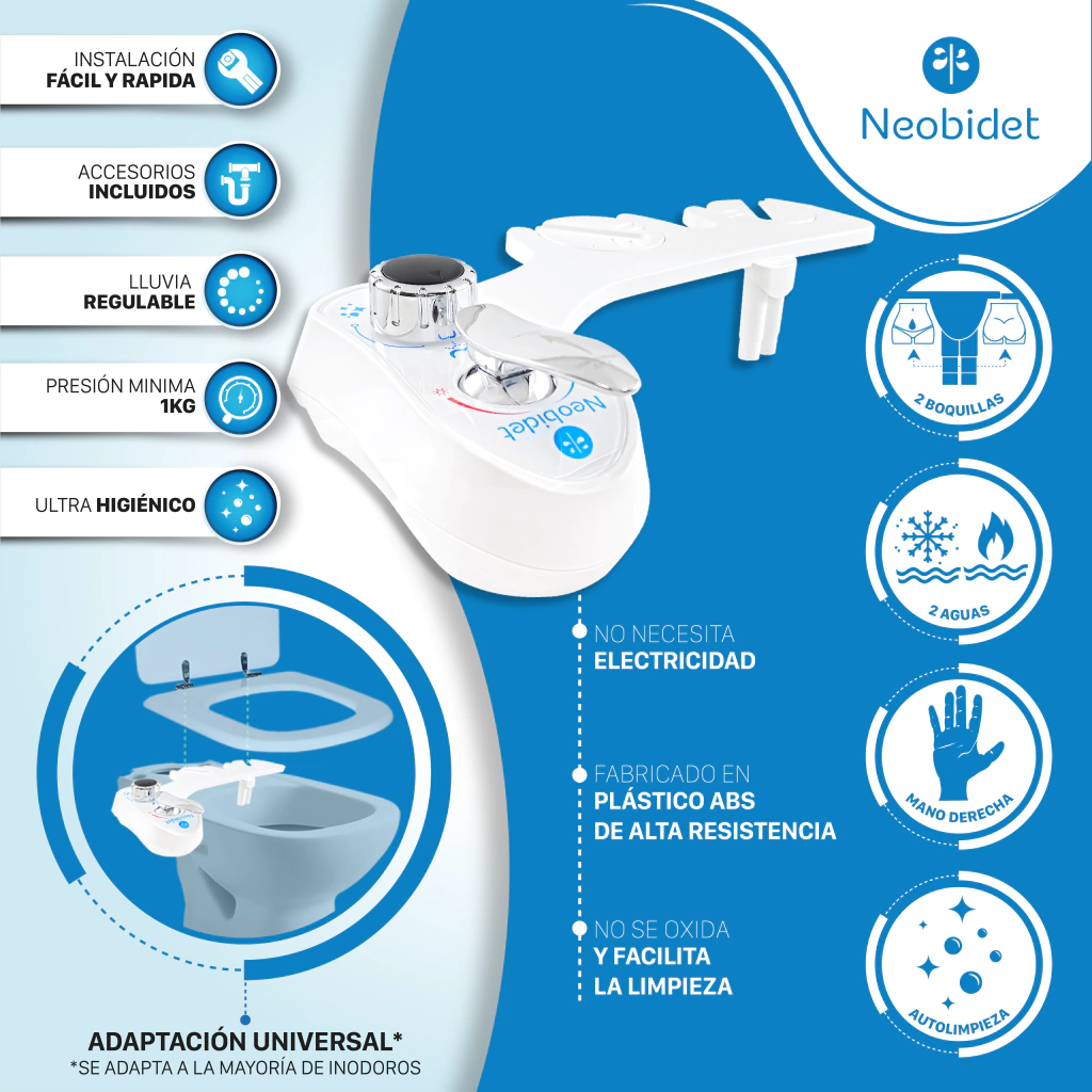 Uno de nuestros modelos Tope de Gama: el sistema Monocomando de este Bidet para Inodoro permite regular la temperatura del agua fácilmente desde el comando. Su sistema de boquillas retráctiles permiten una higiene cómoda y efectiva sin desplazarte del inodoro.