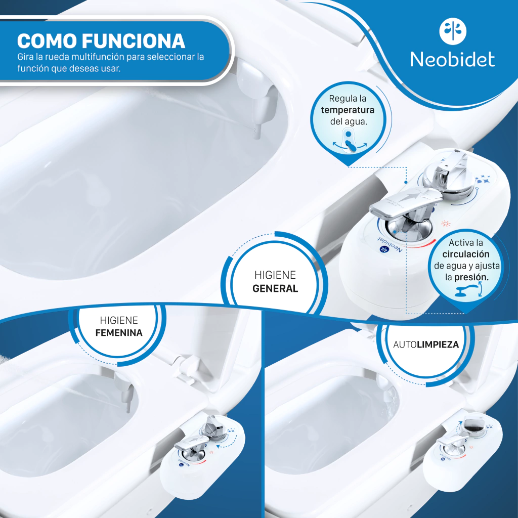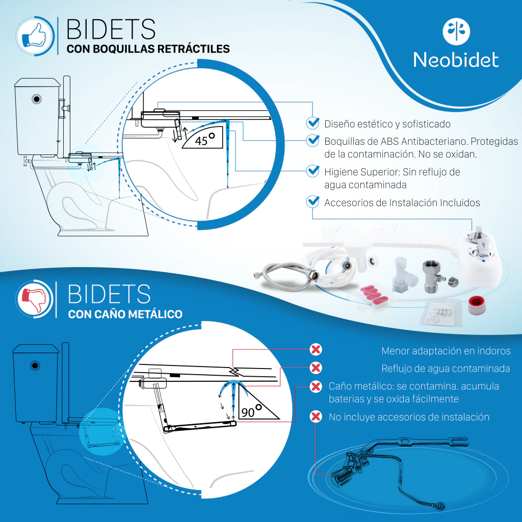 Uno de nuestros modelos Tope de Gama para mano izquierda: el sistema Monocomando de este Bidet para Inodoro permite regular la temperatura del agua fácilmente desde el comando. Su sistema de boquillas retráctiles permiten una higiene cómoda y efectiva sin desplazarte del inodoro. El comando queda ubicado para mano izquierda, ideal si no tienes espacio de ese lado del inodoro, o si la pared está muy cerca. ¡O simplemente si eres zurdo y te resulta más cómodo!